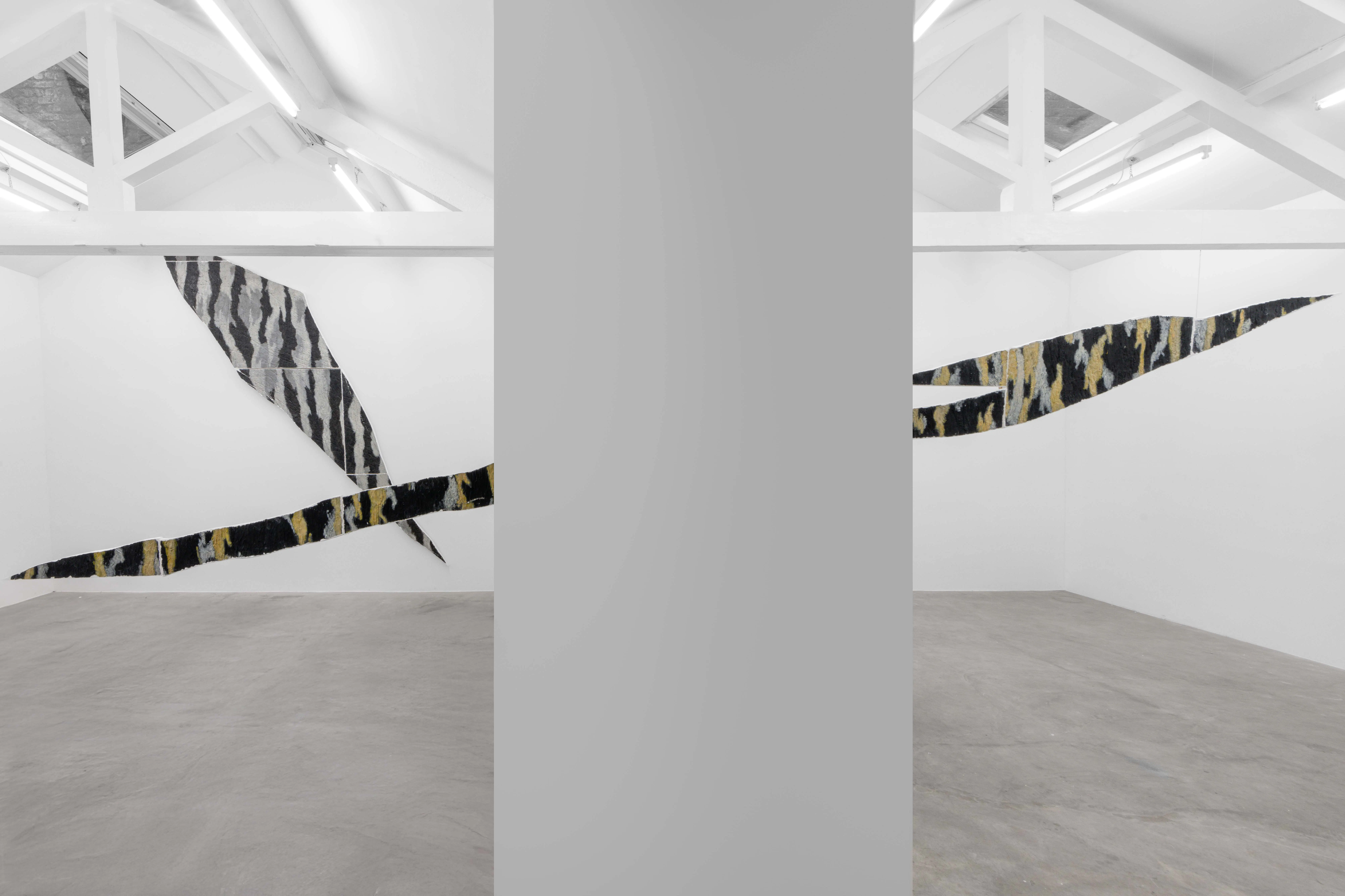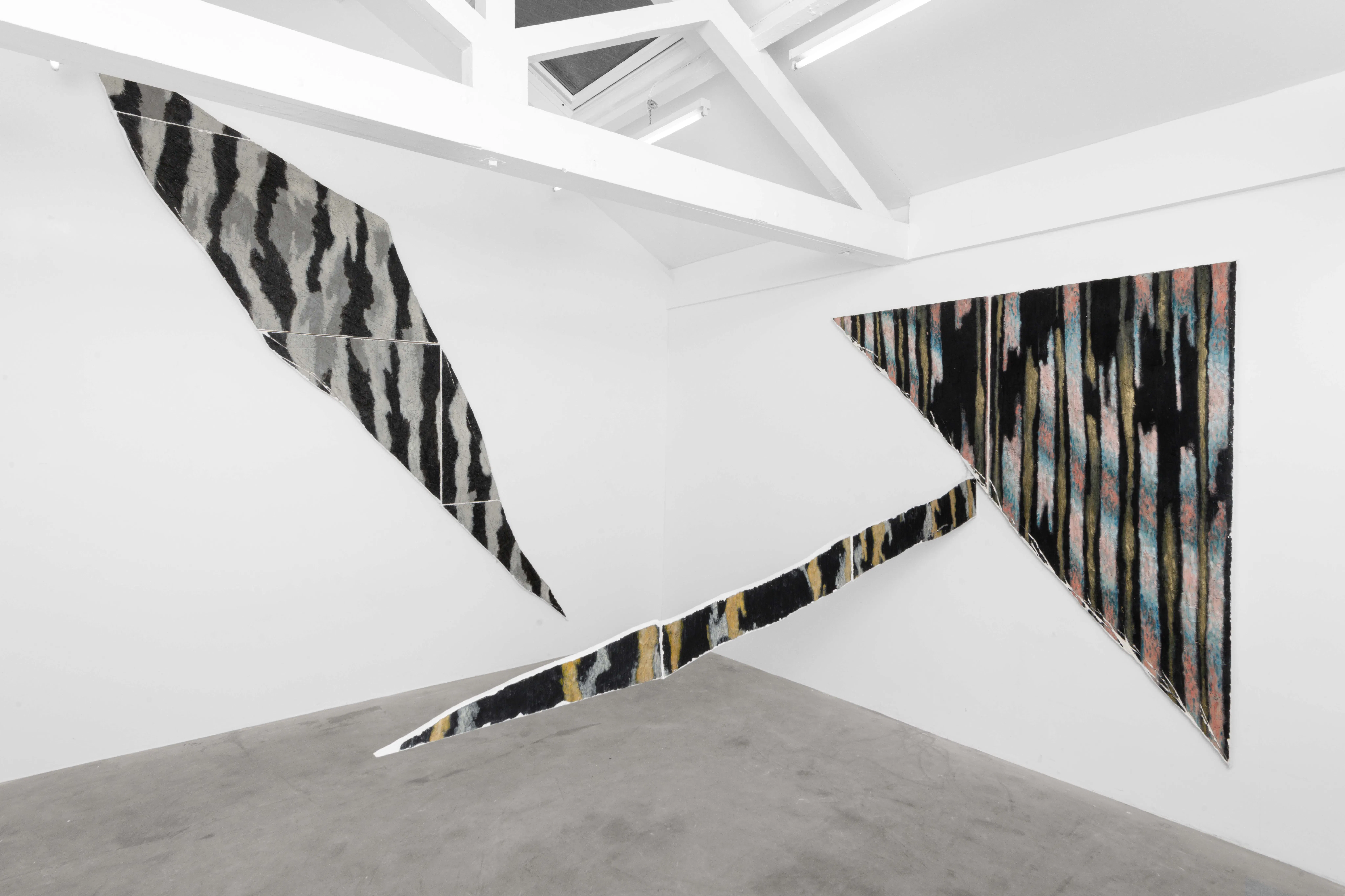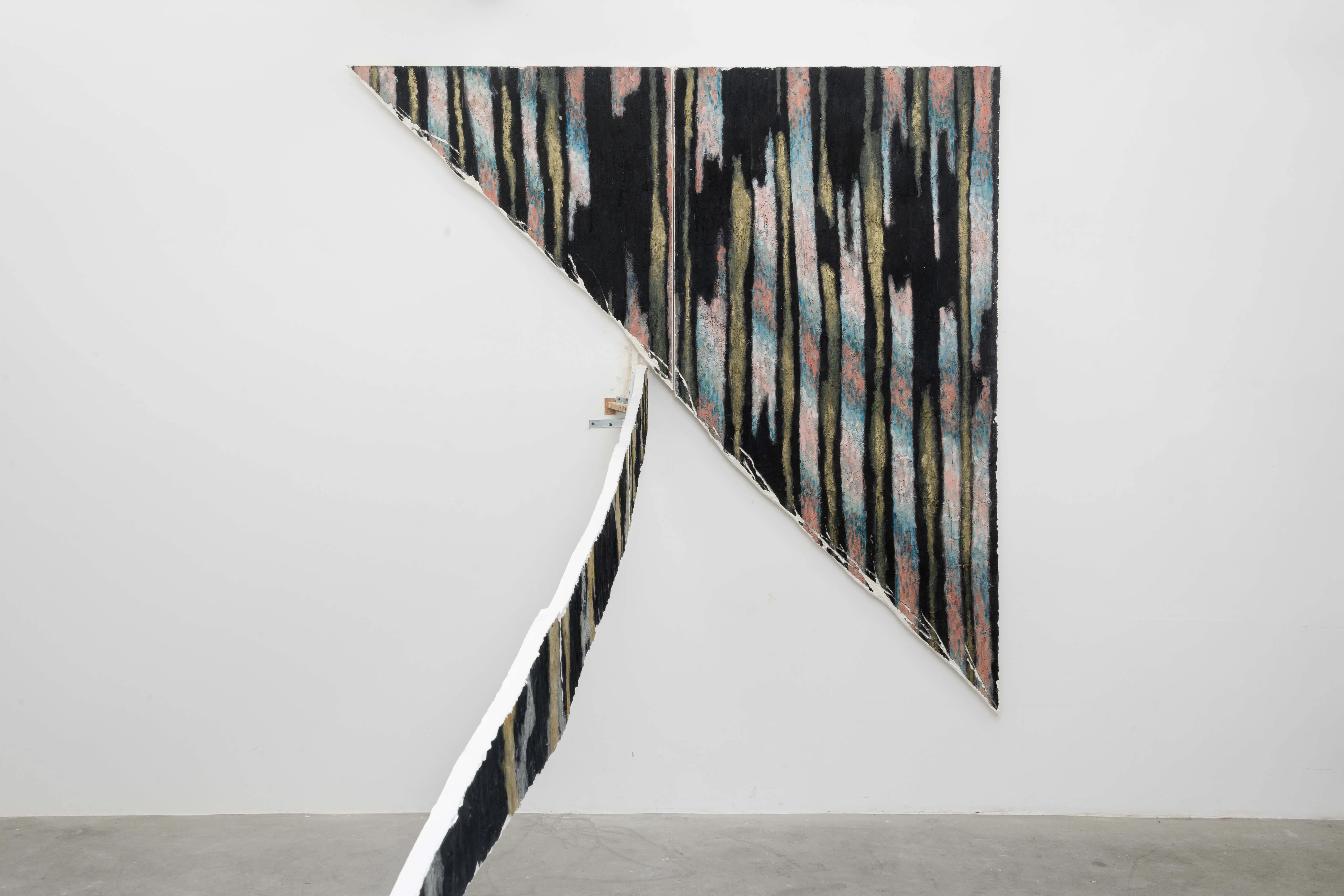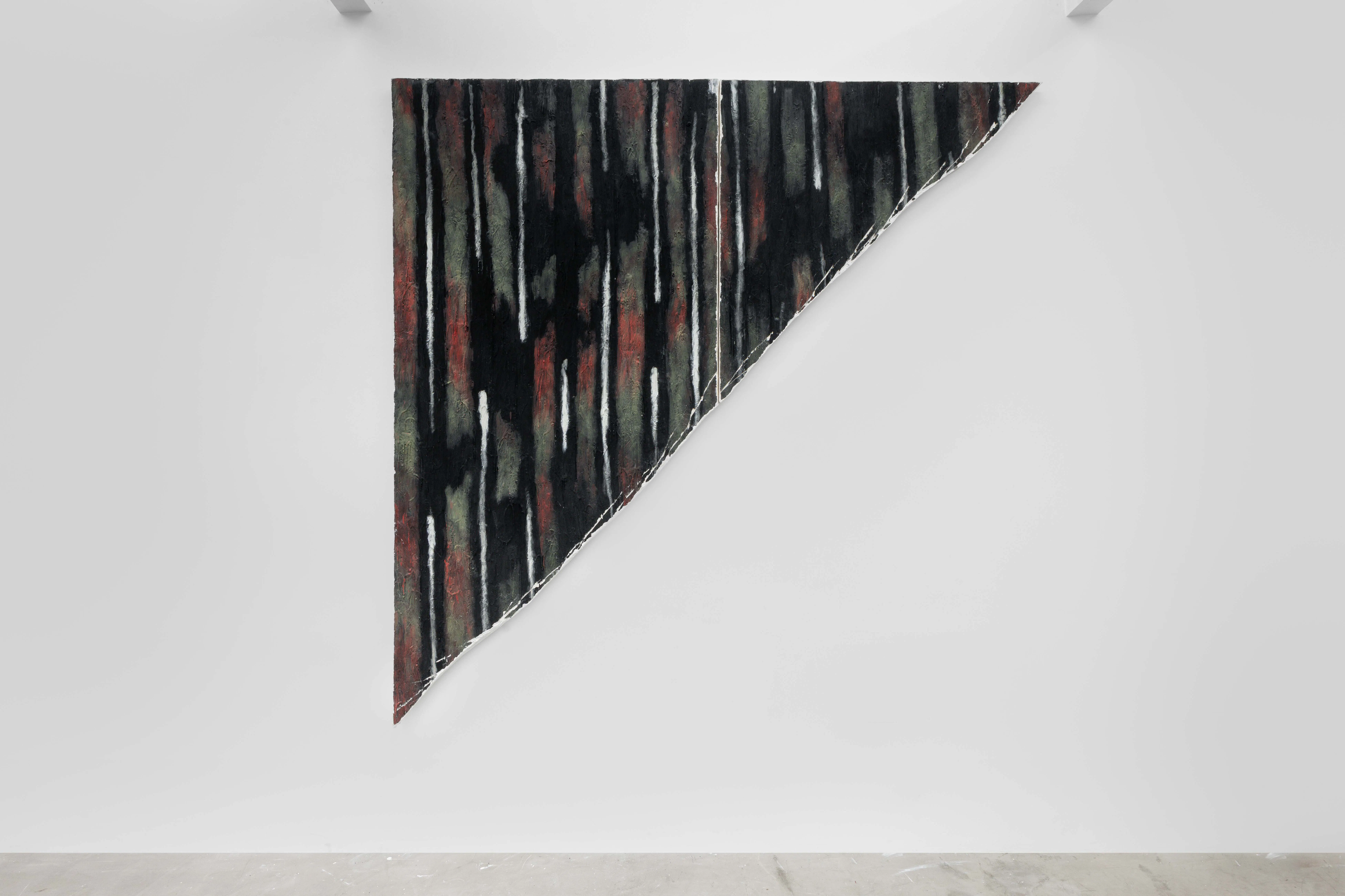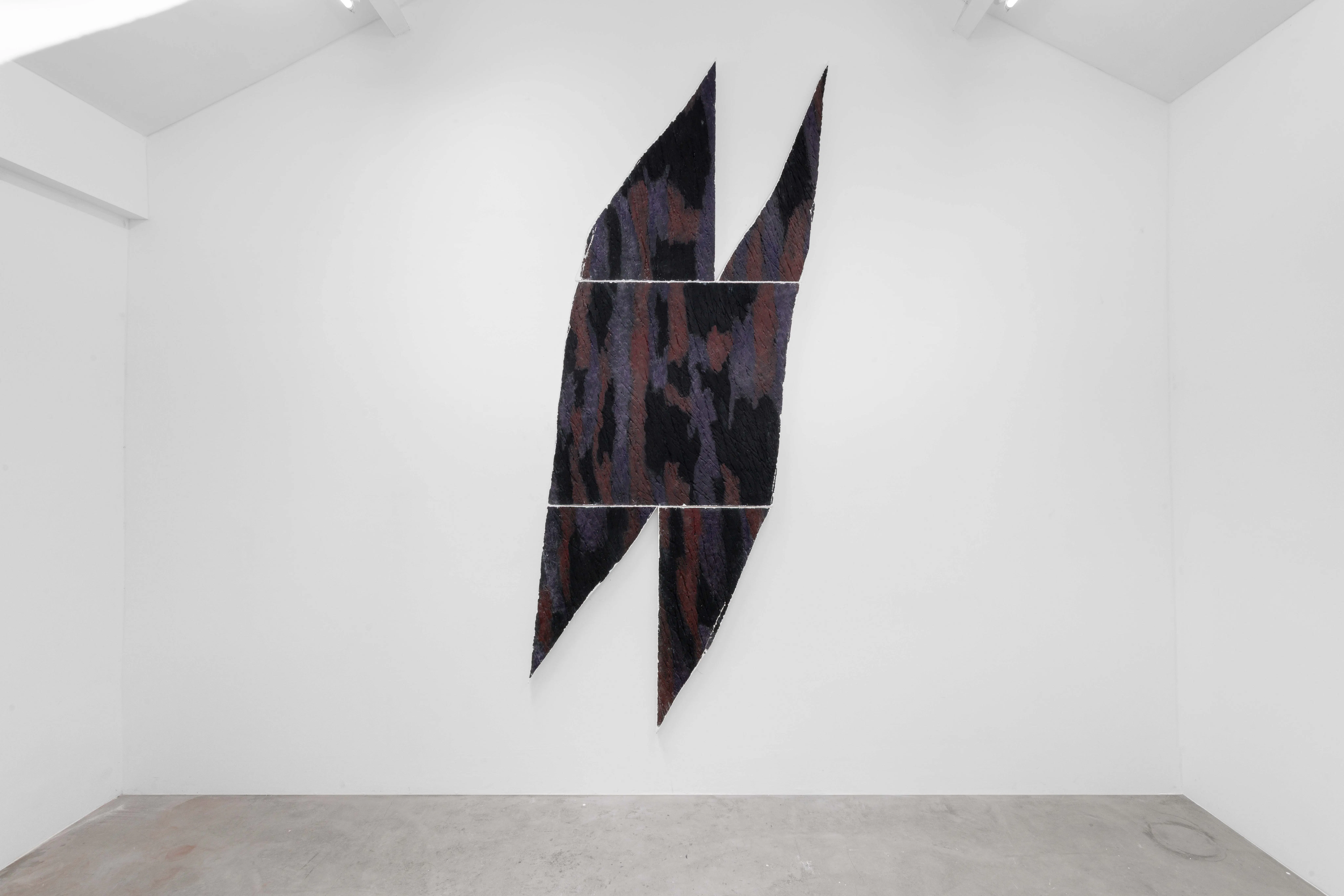 Each work is shaped by a tension between structure and fracture, construction and erosion. This tension extends to colour, which operates as a structural agent. Colour generates density, temperature, and vibration, anchoring the work in material time. It is revealed through process, attaching itself to layers, folds, and resistances embedded in the surface.